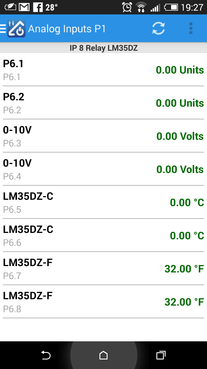 - To scale the LM35DZ analog inputs in order to show temperature direclty in Degrees F, you must do the following settings for P6: Units: °F, Value at 0: 32, Value at 1024: 399
