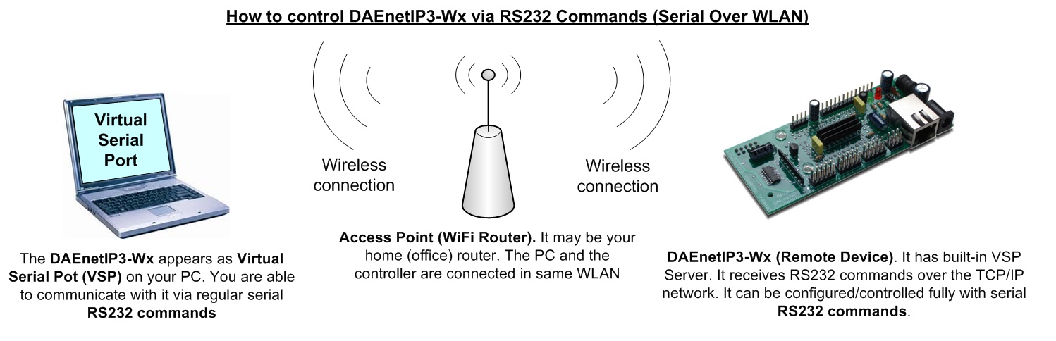 - There is not matter if your DAEnetIP3 device is connected to your PC over LAN cable or Wireless Wi-Fi network, it will appear as VSP (COM Port) on your PC. You need to set only the proper IP, Port and COM Port Name.